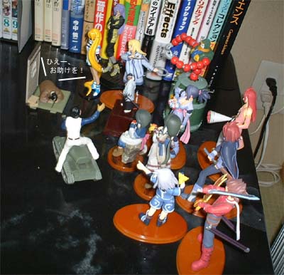 チョコエッグあたりが火付けとなったのでしょうか 世間一般的にフィギュアがブームになったのはここ数年の話。 今やブームに乗じて彼是様々なフィギュアが発売されています。 私もそのブームに乗じてというか踊らされてというか騙されてというか ちょっと気になる物があるとついつい手が出てしまう有様です。 で、最近頑張って買っていたのが テイルズオブシンフォニアのフィギュア。 → 詳しくはこちら 最初はコレットだけ欲しくて買っていたのですが かなり出来が良かったもので色々と手を出しちゃいました。