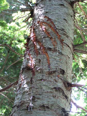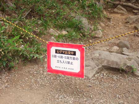 木に斜めの傷が付いています。 皆さんもすぐに分かったと思いますが、これはヒグマの爪痕です。 傷が斜めに付いているのは熊が木に登ったからだそうで。 (木を抱えるように登るので斜めに傷が付く) 最近付けられた傷のようで、剥かれた樹皮もまだ水水しく樹液もあまり固まっておりませんでした。 写真ではさほど感じないかもしれませんが、目の前で見るとかなりインパクトありましたよ。 まだまだ色々な説明を受けましたが、とりあえずはこんな感じで。 もし今後知床五湖へ行かれる方がいらっしゃいましたら、 ネイチャーガイドに申し込むことを激しくオススメします。 かなり充実した知床五湖巡りができますよ。 ガイドの説明がなければ間違いなく「あー、綺麗だねー」で終わっていましたね。 なお、知床五湖はその名の通り5つの湖があるのですが、 熊が出没しやすい時期であるため三湖〜五湖は閉鎖されていました。