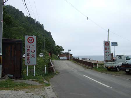 ヒカリゴケは見る角度によって本当に蛍光ペンのような色になります。 ただ、殆ど生息している姿が見られなかったのは、 果たして時期が違うのかそれとも絶滅寸前なのか非常に気になります。 後者だったら・・・・・・嫌だなあ。 セセキ温泉はすぐ目の前が海というロケーションにある珍しい露天風呂です。 当然、満潮時には海の中に沈んでしまいます。 風呂が海の傍にある様子を写真に撮ろうと思ったのですが、 タイミング良く(悪く)オッサンが一人入浴中でありまして、 しかもオッサンが海をバックに腰に手を当ててイチモツを見せびらかしている姿を その家族がワイワイ言いながら写真を撮るといった破廉恥な行為に及んでいたので諦めました。 相泊温泉は羅臼側の車で行ける最終地点にある温泉で、 こっちはシーズン中であれば小屋掛けがされているため、 セセキ温泉に比べれば比較的入りやすいと思います。 ま、入りませんでしたけど。 あと、羅臼側の道路の行き止まりがこちらですね。