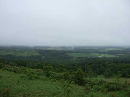 昔は小さな小屋みたい建物だったんですけどね。 果たしてこれは別海町がトドワラの観光に力を入れてきたと見るべきかどうか。 ・・・・・・うん、多分そうだろう(自己完結) 以上でこの日の観光は終了。 標津にあるペンションへ夕食に間に合うようにチェックインしました。 基本的に宿泊場所は旅行会社に手配を任せていたのですが、ここだけは自分で手配しています。 何故なら、私に「北海道の自然の中で満天の星空を静かに眺めたい」という希望がありまして、 どうしても明かりが少なくて人も少ない場所に泊まりたかったのです。 まあ、生憎空は曇っており残念ながら星を眺めることはできませんでしたが。 なおこのペンションは、 テレビも無い、ラジオも無い、携帯の電波も届かない、 エアコンも無い、自動販売機も無い、ADSLなんじゃそりゃ、 コンビニも無い、そもそも周りに建物が無い、あるのは澄んだ空気と豊かな自然だけ ※吉幾三の「オラこんな村いやだ」っぽく読んで(歌って)みてください という日々社会の荒波に揉まれる企業戦士が休息するには最適な場所でした。 (要するに現実逃避するにはもってこいな場所ってことで) さすがに毎日携帯が繋がらないのは不便ですけどね。 あと、自家製のパンや無農薬野菜を使った料理も美味しかったなあ。 生憎の天気でしたが落ち着いた静かな夜を過ごすことは出来ました。 またいつか泊まりたいペンションです。 今度は晴れてるといいなあ。 【 6日目(7/12)】 泣いても笑っても最終日。 北海道という幻想的な世界から東京という現実世界に戻らなければいけない日。 そして時坂樹に別れを告げなければいけない辛い日。 せめて時間ギリギリまで目一杯遊んで(観光して)やるぞ! ・・・・・・と意気込んだのですが生憎の雨模様。 今回の北海道旅行では初めて雨に見舞われましたね。 何も最終日に雨降らなくたっていいじゃな・・・・・・ いや、もしかするとこの雨は私と別れたくない時坂樹の涙なのかも!! などとアホなことを考えながら向かった先は開陽台。 330°大パノラマと微妙な中途半端さを感じなくもない景色が売り文句の台地です。 地平線が丸く見える、大粒の星が降り注ぐ、など北海道の魅力を存分に味わえる場所なのですが、 ![]()