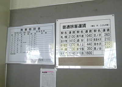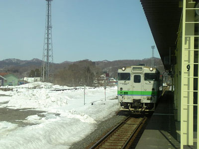 3月21日(金)〜3月22日(土)の1泊2日で北海道へ出張に行ってきました。 まあ、実際に仕事を行うのは3月21日だけであり、 「仕事中に何かトラブルがあって飛行機に間に合わなくなると困る」 と判断して1泊したため、翌日の3月22日はフリーな一日でしたが。 ……この時点で「おい!北海道で遊んで帰りたかっただけだろう!」と突っ込まれそうですが、 本当に仕事で大きなトラブルがあったため、 当日に帰ろうとしていたら間違いなく飛行機に乗れませんでした。 トラブルの詳細は伏せますが、とにかく遠方への出張は保険を掛けておいて損はないです。 ただ、フリーな一日とは言いましたが、 帰りの飛行機は16時30分発という中途半端な時間に飛び立つ便しか取れなかったため、 何をするにも微妙に時間が足りません。 札幌や小樽は過去に観光したことがあるので、別の場所を観光しようと思いましたが、 15時半〜16時くらいに新千歳空港へ着かなければならない条件下では何気に難しくて断念。 また、札幌ドームの『日ハム×ロッテ』戦に行こうかとも思いましたが、 16時30分発だと15時くらいまでしか観戦できないため同じく断念。 まあ、北海道でなければゲーセンで時間潰しても良かったのですが、 やっぱり北海道に来たのであれば何かしら想い出を作って帰りたいものです。 散々思い悩んだ結果、1人でしか出来ないようなことをやろうと決意。 『旅マン!』のようなことをやってみようと思い至りました。 −−−−−−−−−−−−−−−−−−−−−−−−−−−−−−−−−−−−−−−−− ※『旅マン!』とは ビックコミックスピリッツ誌上で連載された、ほりのぶゆき氏の漫画。 ほりのぶゆき氏が自ら日本全国を旅行してその内容を漫画にしたもの。 それだけ聞くと至って普通の『旅行記』のように思えるのだが、 旅行にあたって以下のような制限が設けられていた。 @必ず日帰り A前回行った場所よりも遠い所へ行かなければならない(拠点は東京の自宅) B移動手段は普通電車しか使えない(特急電車とか新幹線はアウト) ※連載後期になると高速バスとか特急電車にも乗っていた よって連載初期の頃は近場の観光地を細かく紹介する内容だったが、 連載後期になると「どうやって上手く電車を乗り継いだら日帰りできるか」が重要になり、 ロクに観光もせず戻ってくる内容が続くようになってしまった。 ちなみに最終回は東京から神戸(三ノ宮)まで一日かけて普通電車で往復したのだが、 神戸(三ノ宮)の滞在時間はたったの「5分」しかなかった。 ただ、読むと本当に「旅に出たくなる」気分になってしまい、 誰かが『旅マン!』を読むと、決まって「旅に行きてぇ!」というメールが関係者各位の間を回る。 ほりのぶゆき氏の才能、恐るべし。 −−−−−−−−−−−−−−−−−−−−−−−−−−−−−−−−−−−−−−−−− ま、要するにこの『旅マン!』の旅を習って、 「普通電車で何処まで行って帰って来れるか」を敢行した訳です。 前日の夜中にインターネットで時刻表と睨めっこした結果、 夕張までならなんとか行けそうなので目的地は夕張に設定。 財政破綻で色々と話題になったあの夕張です。 実はまだ道内では行ったことのない場所だったので、北海道好きとしては都合も良かったり。 なお、北海道には2040円で「フリー区間内は普通列車自由席乗り放題」になる 『一日散歩きっぷ』という便利な切符があることを知り、この切符を利用させて貰うことに。 ![]() 勿論、この切符の存在が私の『旅マン!』の旅を後押ししたのは言うまでもありません。 そして翌朝、余裕を持ってホテルをチェックアウトすると、 札幌駅の立ち食い蕎麦屋で遅い朝飯を食べてから意気揚々と電車に乗り込みました。 果たして、Zac.の『旅マン!』の旅は如何に…… 【往路】 ■ 札幌駅(10:10発) ![]() まあ、有名都市のメインステーションですので特に珍しくも何ともないと思いますが、 旅の出発地点ということもあり写真は撮っておきました。 ※なお、千歳駅までは快速エアポートに乗りましたが、 珍しくもない路線を走っているので、札幌〜千歳間の駅紹介は省きます。 ↓ ↓ ↓ ■ 千歳駅(10:35着〜10:40発) ![]() 千歳駅で10:40発の新夕張行き普通電車に乗り換え。 あまりお目にかかれないワンマン回数券方式の一両編成でした。 (電車の写真は後ほど載せます。千歳駅では時間無くて撮れませんでした。) ↓ ↓ ↓ ■ 南千歳駅 ![]() 新千歳空港への乗換駅ということもあるのか、 駅の周りは結構発展している雰囲気でした。 ↓ ↓ ↓ ■ 追分駅 ![]() 苫小牧・帯広・千歳の3つの方面に分岐する駅ということもあり、 思ったより規模が大きく、駅の周りにもそこそこの集落がありそうな雰囲気。 ↓ ↓ ↓ ■ 東追分駅 写真撮影のタイミングを逃しました。 まあ、帰りの電車が停まった時に撮ればいいかな……と思ったのですが、 帰りは通過駅となってしまい撮影できませんでした。 ※実際「誰が乗るんだ?」と思うくらい周
