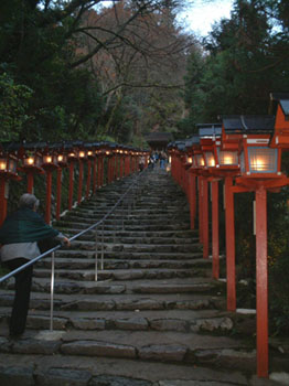 貴船神社の参道と巫女を体験したり、