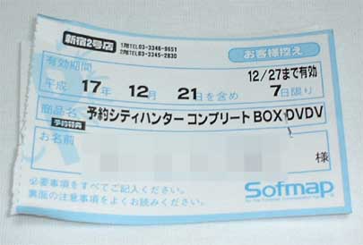 ついに一世一代の大勝負に出ることにしました。 ![]() TVシリーズの1,2,3全話とTVスペシャル3話、そして劇場版3話が収録、 シティーハンターファンとしては絶対に入手しておきたいアイテムです。 アナウンスされたときからスゲー悩みました。 ケーブルTVでやってたテレビシリーズとかスペシャルとかビデオに撮ってありますが 飛び飛びに録画してしまってますし何よりビデオテープは劣化します。 現にもう画面の下の方にはノイズがチラチラ出てしまっていますし。 そんな訳で喉から手が出るほど欲しいかったんですけど問題はその値段。 さすがにDVDに10万近く払うのって結構勇気要ります。 もう少し上乗せすればうちの家賃が払えますからね。 そこそこのスペックのデスクトップパソコンも買えますよ。 実は年末までの資金繰りとか色々考えて一度は断念しかかったのですが、 ついこのあいだカラオケで私の十八番である『GetWild』を熱唱したらもうダメ。 ああ、もうこれは買うしかないと。 私も解けない愛のパズルを抱いてみようと。傷ついた夢を取り戻すと。 北斗の拳やアニメ三銃士のDVD-BOXは悩んだ末に値段がネックになって泣く泣くスルーしましたけど、 今回のシティーハンターは『GetWild』効果もあって購入(予約)に踏み切ったのであります。 まあ、大いに楽しみますよ。 GetWildを歌いながら。 待ってろよ槙村!(←実は槙村ファン) ちなみにDVD-BOXにこれは収録されません。 ![]() (伝説のストIIパロを観たいという気持ちも少しだけあったりしますが) <BGM> GetWild(TM NETWORK) [ TMN BLACK / EPIC/SONY RECORDS ] |
