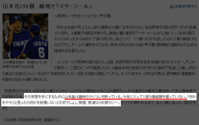 | 第358回:山本昌、好投の裏側に(2008/08/12) | |