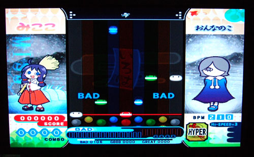 コンマイがリリースしているbemaniシリーズ(音ゲー)の中に 『Pop'n Music』(ポップンミュージック)というシリーズがあります。 私が夢中で遊んでいる『beatmania IIDX』とやってることはほぼ同じで、 画面上から落ちてくる丸っこいオブジェクトに合わせ、 音楽に乗りながら9つの大きなボタンをタイミング良くゲームです。 他のbemaniシリーズよりもポップなイメージ&収録曲がライトな上、 9つのボタンを仲間内で分担するという遊び方もできるので、 友人や彼氏・彼女、職場の同僚と一緒にプレイしたことのある方は結構いると思います。 ぶっちゃけ音ゲーの中でも『導入の敷居』は低い方ですので、 (やり込むと他の音ゲーよりも敷居高くなりますけど) 「ニデラは無くてもポップンは置いてある」というゲーセンも多々見掛けますし。 で、この『Pop'n Music』ですが、なんとXbox360のLiveアーケードで配信されました。 しかもビックリ米国版(タイトルは『Beat'n Groovy』)。 他の音ゲーに比べて日本語の歌詞を含んだ楽曲が多いので 海外での需要は低いだろうと思っていたのですが……まさかの展開に驚きを隠せませんでした。 勿論、音ゲー好き&珍しい物好き&ネタ好きの私としては、 例え800ゲイツ(日本円にして約1200円)払わなければいけないとしても、 「音ゲーバンザイー!!」と大和魂を胸に特攻するしかないでしょう。 と言う訳で、早速ダウンロード購入してみました。 ・ ・ ・ ・ ・ ・ ・ ・ ・ ![]() 誰だお前ら。 ![]() 全然ポップじゃねー!! いやね、普段私が遊んでいる『Pop'n Music』はこういうものなんですよ。 参考:CS版『Pop'n Music12 いろは』 ![]() ![]() 個人的に、 ![]() なんだよこの台湾プロ野球のマスコットみたいなウサギは。 いや、まだマスコットの方が愛嬌あって可愛いかも。 ![]() 参考:2006年のアジアシリーズ当時のLe newベアーズのマスコット 収録曲少ない、最高5ボタン、ボタンコンフィグなし……まるで良いとこなし。 1200円分ゲーセンでポップンやるか、もう少し金出してCS版ポップンを買った方が良かったです。 メリケン人の感覚はやっぱり分かりません。 <BGM> Masquerade [ 悪夢奏でる涙の旋律 / Asriel ] |